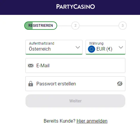 Registrierungsprozess bei partycasino Casino – erforderliche Daten und Schritte